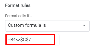 To highlight cells where the value is not equal to another value, you can create a conditional formatting custom formula.